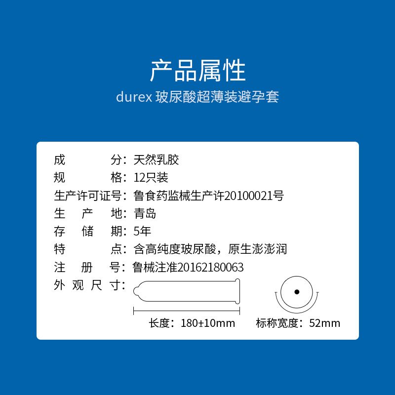【避孕润滑】玻尿酸超薄 杜蕾斯 12只装